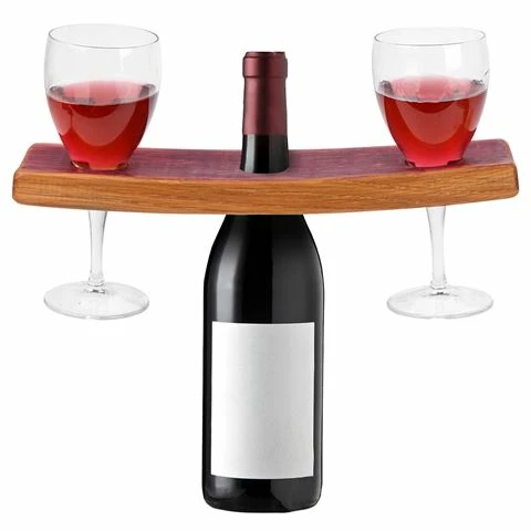 Winestains’ Small Bottle and Glass Display is the perfect item for your next alfresco meal. Crafted from an aged wine barrel, this stake has a red-stained surface that adds to its rustic aesthetic. Slide the neck of your wine bottle through the middle hole to create an impromptu stand for your drinks. Just slide your wine glasses through the two specially-designed slots to hold them upright and secure. The only wine stains you’ll see are on the stake itself!